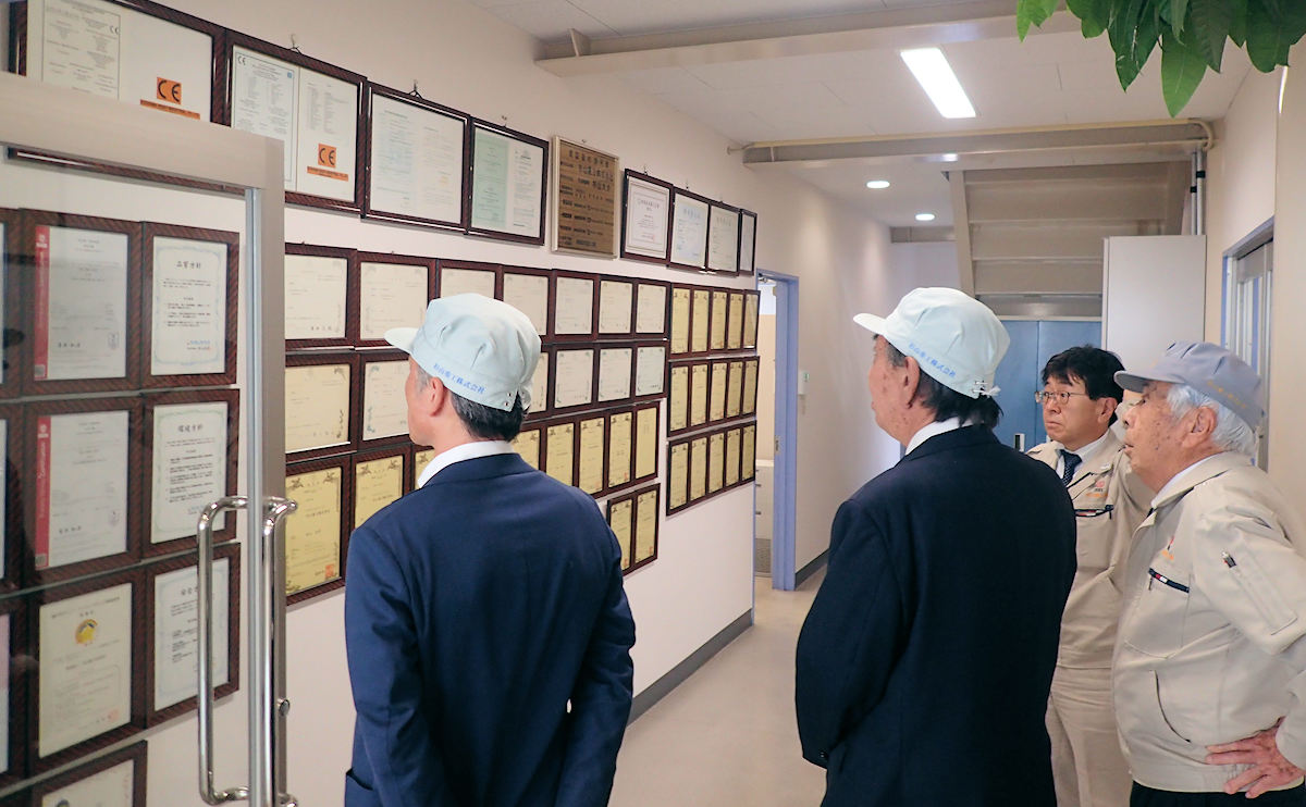 瀬戸市経済文化部商工観光課の企画により、川本雅之瀬戸市長が当社工場を視察されました。 粉体機器の製造過程をご見学され、粉体業界の最新技術の動向や地域産業の活性化などについて、意見交換の機会を頂戴いたしました。